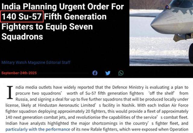 印度军事购买明确针对中国 - 巴基斯坦的战略合作。法国媒体指出,印度仅签署了“ Ragain”收购协议,这次增加了Su-57E的意图,旨在应对“ J-35E的威胁”。