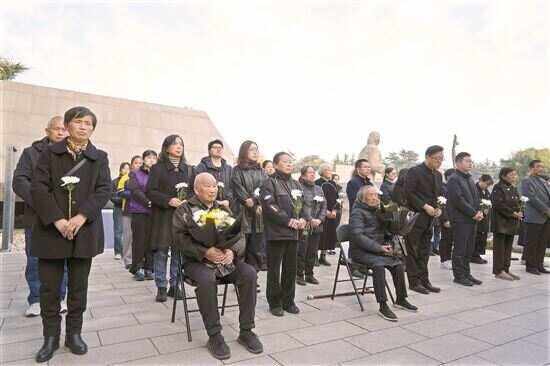 ■ 11月30日,在南京大屠杀遇难者家属追悼会上,南京大屠杀幸存者刘民生(前排左)、夏淑琴(前排右)手捧鲜花吊唁。据新华社报道,在第十二个国家公祭日到来之前,南京大屠杀遇难者家属追悼会于11月30日启动。据统计,今年南京大屠杀幸存者又有8人死亡,仅剩24人活着。一大早,幸存者夏淑琴、刘民生及家人赶到侵华日军南京大屠杀遇难同胞纪念馆“哭墙”前,鞠躬、献花、默哀,悼念88年前逝去的亲人和同胞。 “八十八年了,八十八年了,八十八年了……”夏淑琴站在“哭墙”前,嘀咕着。她的孙子夏远说:“奶奶1937年12月13日,夏淑琴一家9口人中有7人被日军残酷杀害,时年8岁的夏淑琴身中三刀,幸免于难。夏淑琴很快在“哭墙”上找到了亲人的名字,他用手指指出了名字,女儿和孙子则用黑笔为他“刷新”亲人的名字,91岁的刘民生站在“哭墙”前,陷入回忆:同样是那天,在难民区,我的父亲被日本兵俘虏,回来后,我的右脚被日本兵刺伤,至今仍有伤痕。老人希望后人永远记住这段历史,让悲剧不再重演。时间的见证者,会随着时间而消逝。截至目前,南京大屠杀遇难者登记的幸存者仅有24人。南京大屠杀历史记忆传承协会。历史必须一代一代地传承下去,哪怕这个传承是一个痛苦的过程。 “每次站在侵华日军南京大屠杀遇难同胞纪念馆前,我都会用心流泪,一次又一次地向奶奶志强哭诉,向大家讲述父亲的痛苦经历。常小梅、夏远等幸存者的后裔,以及拯救中国人民、保存历史证据的中外人士的后裔,接过接力棒,传递着南京大屠杀的历史记忆。至今,共有38名中国公民和外国人成为南京大屠杀历史记忆的传承者,他们用自己的方式传承着历史、传播着真理、传承着信仰。你的孙子会告诉你的。”常小梅说,愿所有逝去的同胞安息,愿这个世界不再有“妈妈,醒醒”的希望,愿和平之花永远在这片土地上绽放。